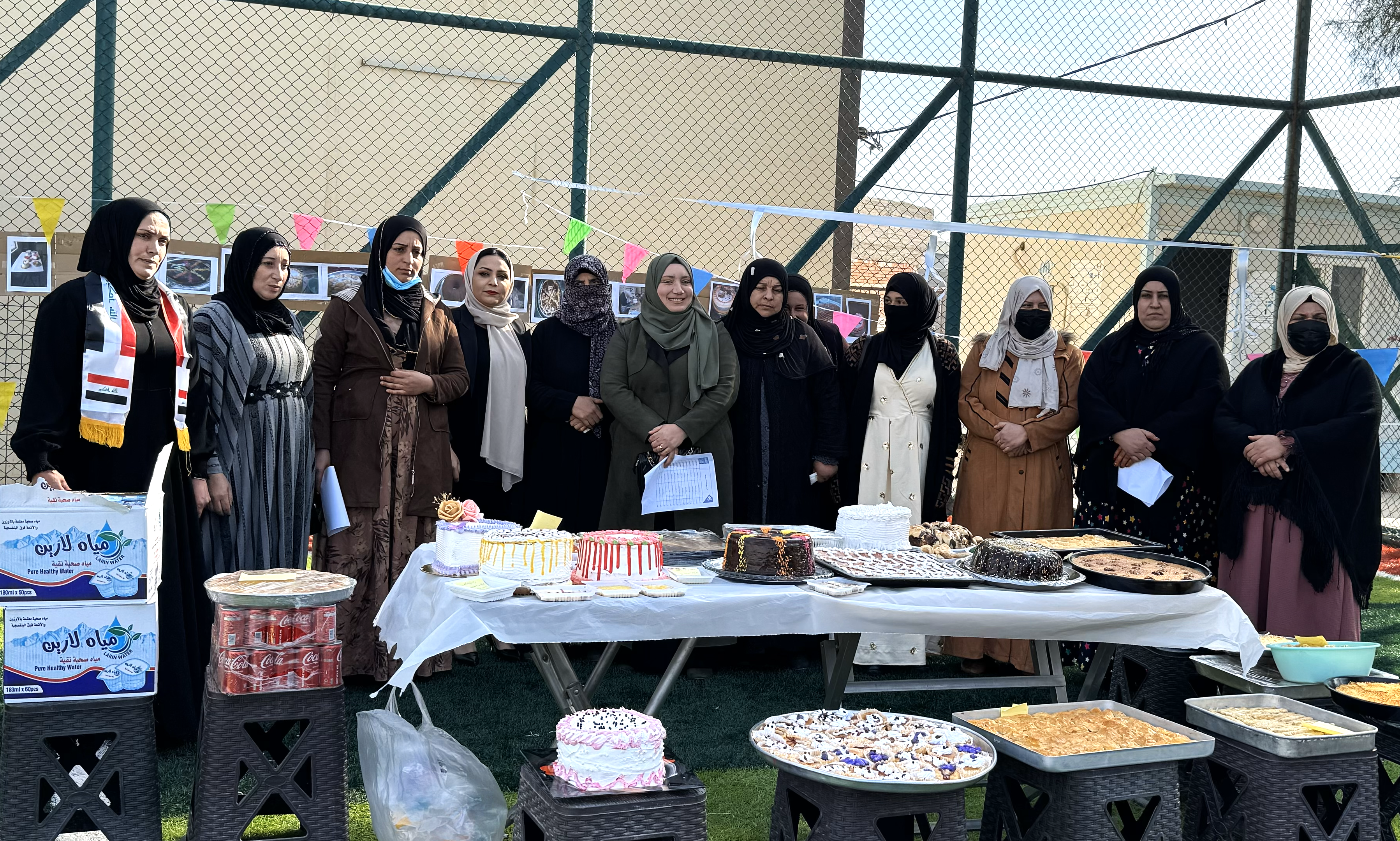 النساء الثلاث (من اليسار إلى اليمين): بثينة ورانيا وسوزان يستعرضن بعض إبداعاتهن في مجال الخبز والمعجنات خلال لقاء في مركز تدريب الزاب الحكومي.