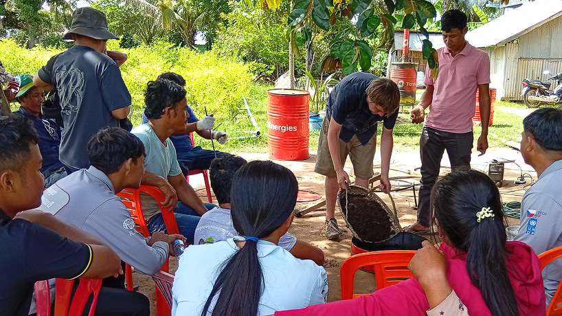 Cambodia imports more than 1.4 million tons of fertilizers each year, while rice husks, corn cobs, and coconut shells often go unused or burned. Through pyrolysis- heating organic matter without oxygen- these residues can be transformed into biochar, a carbon-rich material that improves soil structure and nutrient retention.