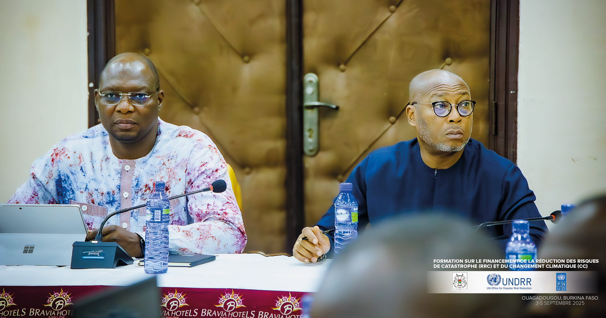 Le Ministère de l’Économie et des Finances, en partenariat avec le Programme des Nations Unies pour le développement (PNUD), et le Bureau des Nations Unies pour la réduction des risques de catastrophe (UNDRR) dans le cadre de la mise en oeuvre du Projet de Résilience dans le Sahel, a organisé du 3 au 5 septembre 2025 a Ouagadougou, un atelier de formation sur le financement de la réduction des risques de catastrophe (RRC) et du changement climatique (CC). La cérémonie d’ouverture a connu la présence effective du Directeur Général de l’Économie et de la Planification (DGEP) et du Représentant Résident a.i. du PNUD au Burkina Faso.
