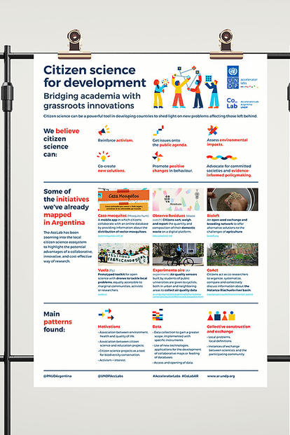 The UNDP Acceleration Lab in Argentina, Co_Lab, together with the Ministry of Science, Technology, and Innovation (MINCYT), co-created a mapping of national citizen science environmental initiatives. Citizen science refers to the collective, open, and participatory research effort aimed at generating knowledge rigorously and driven by a broader and more heterogeneous range of actors, who are not necessarily within traditional academic circles. The mapping aims to: