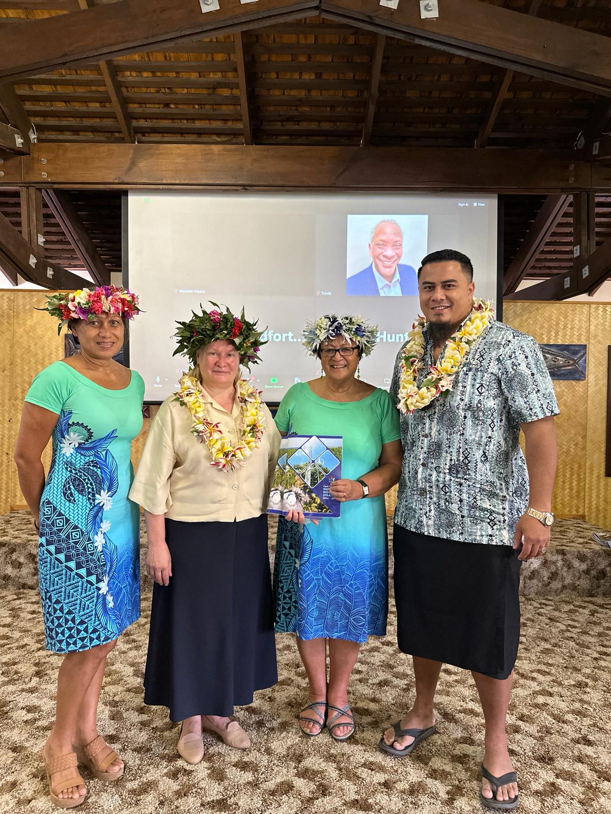 Launching the Cook Islands National Digital Strategy 2024-2030. From left to right: Pua Hunter, ICT Director – Cook Islands Government; Aliona Niculita – Resident Representative, UNDP; Maureen Hilyard, Project Coordinator; and Taupa’ū Joseph Mulipola, Officer in Charge, Governance Unit, UNDP