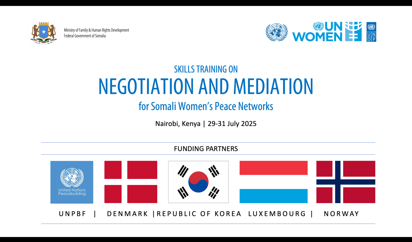 These remarks were delivered by Lionel Laurens, Resident Representative, UNDP Somalia, at the opening of the Somali Women’s Peace Network Workshop on Mediation and Negotiation, held in Nairobi on 29 July 2025, organized by UNDP Somalia and the Clingendael Institute with the support of Denmark, the Republic of Korea, and Luxembourg through the UNDP Funding Windows.