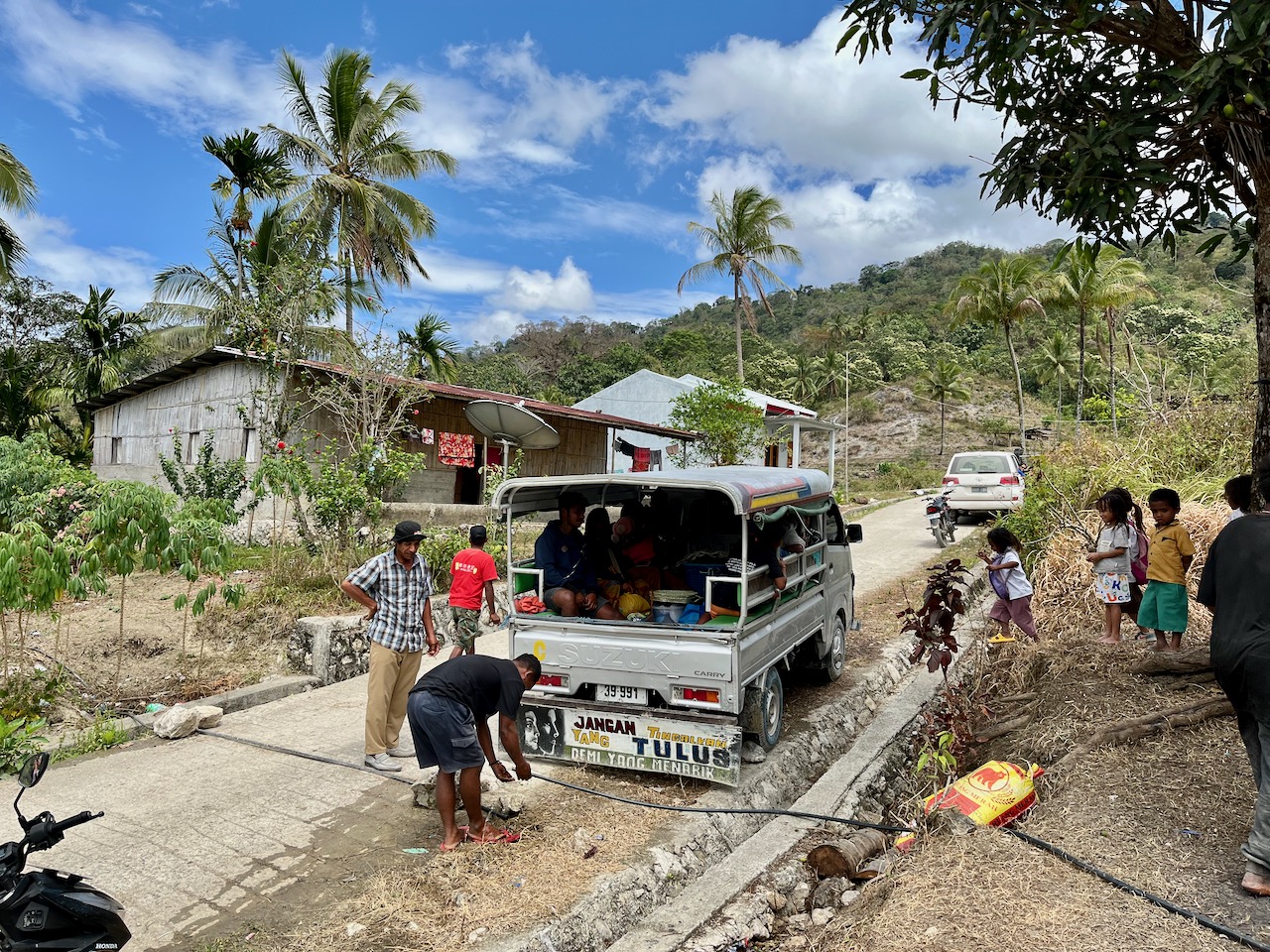 Driver Jacinto Viana Ximenes, from Suco Lavateri, Baucau Municipality, transports passengers and goods along the newly rehabilitated Lavateri road, which has made travel faster, safer, and more accessible for local communities.